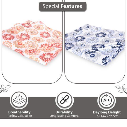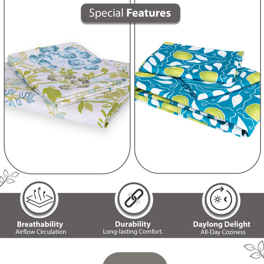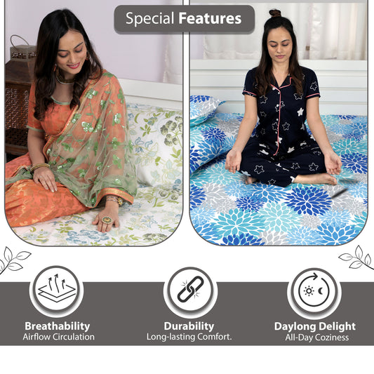 Green and Blue Floral Print Combo Bedsheet for Single Bed
