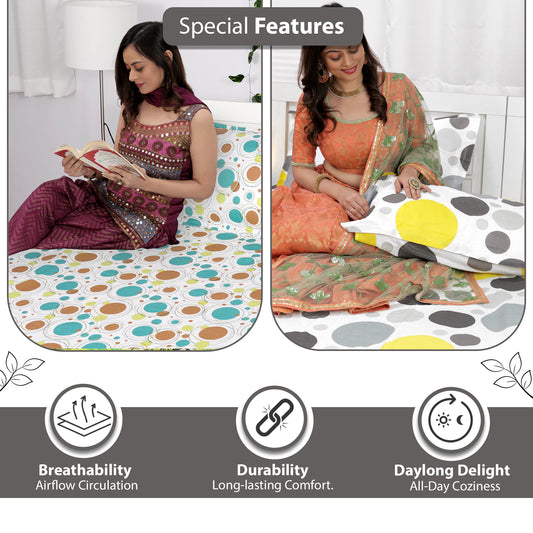 Colorful Polka Dots Combo Bedsheet for Single Bed