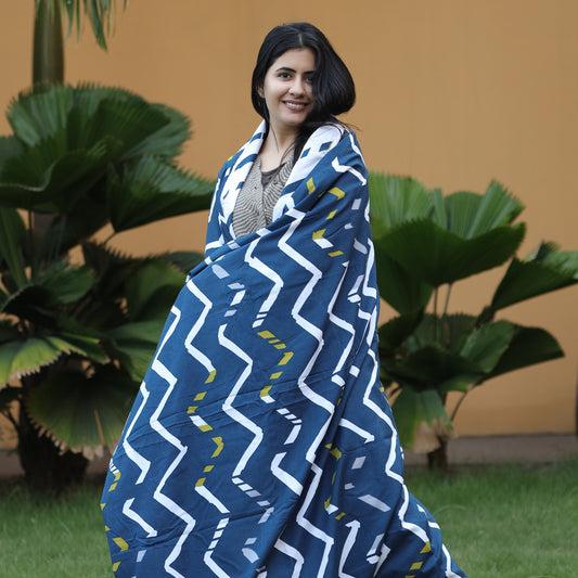 Blue And Green 120 TC Cotton Abstract Pattern Single Bed AC Blanket Dohar for All Season