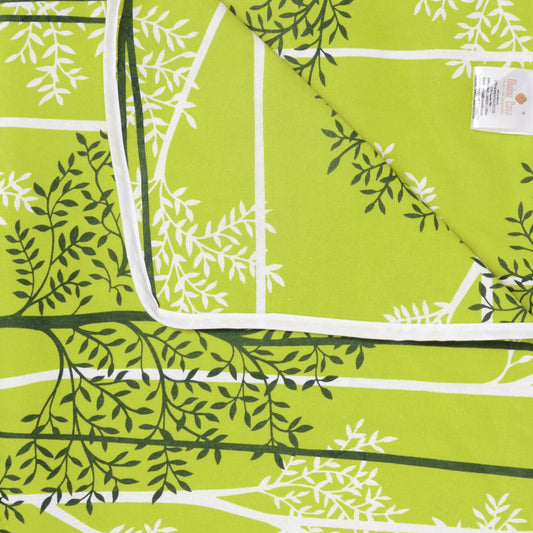 Green 120 TC Cotton Leaf Floral Pattern Single Bed AC Blanket Dohar for All Season