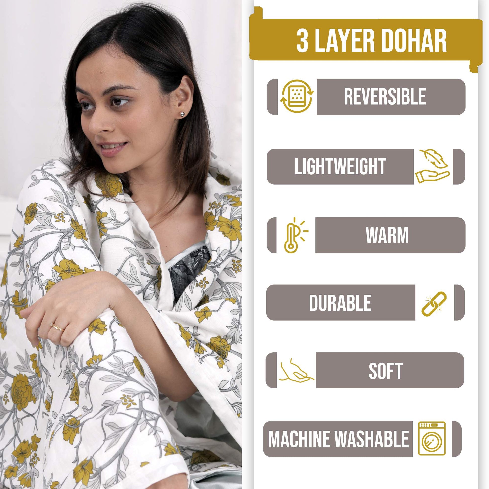 Comfort and style with Divine Casa's premium Dohar collection. Our exquisitely crafted Dohars blend warmth and elegance, perfect for cozy nights or stylish home decor. Explore a range of meticulously designed Dohars that combine softness, durability, and captivating patterns, enhancing your living spaces with luxury and charm. Elevate your comfort experience with Divine Casa Dohars, where comfort meets sophistication.