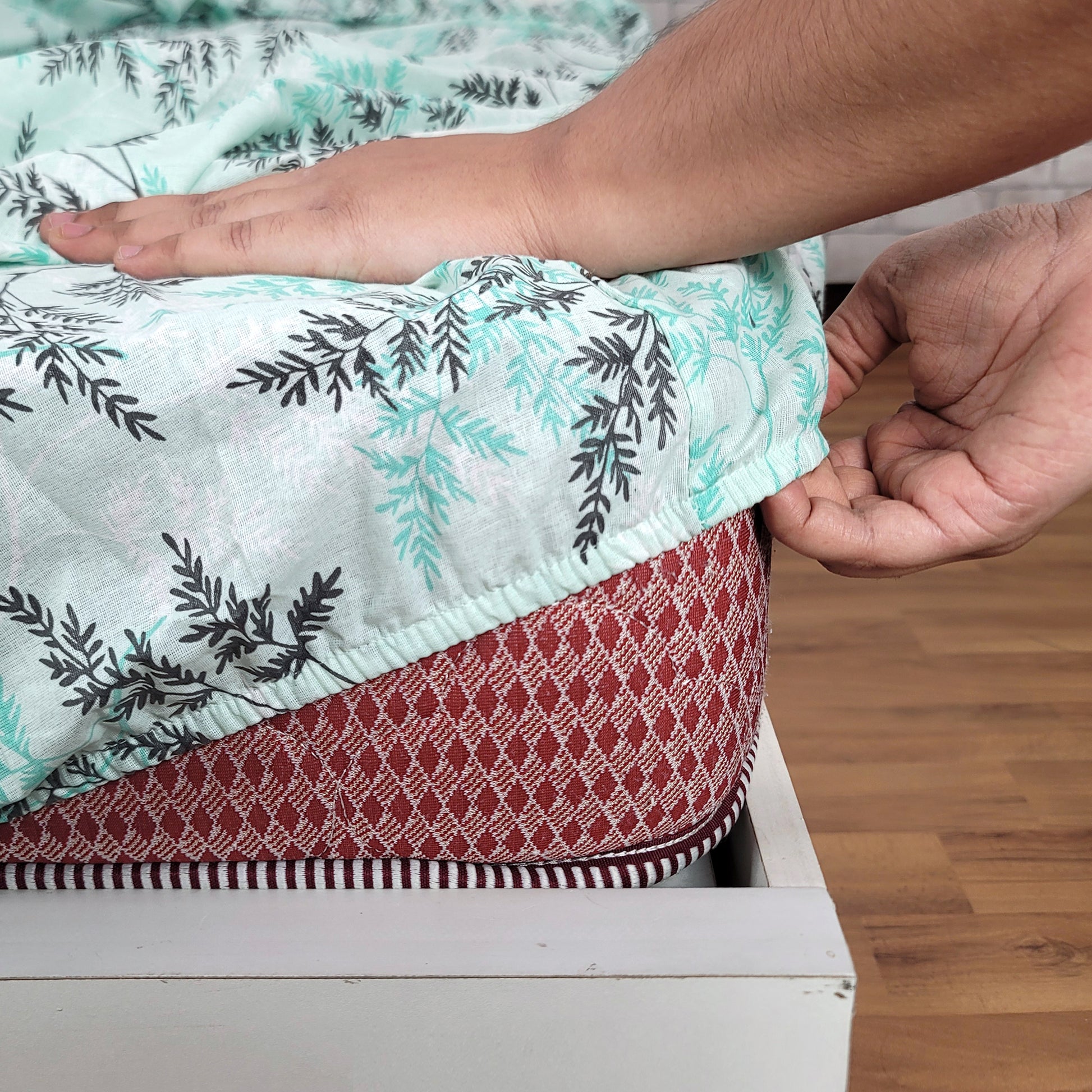 Discover the ultimate in comfort and convenience with our 100% Cotton 144 TC Elastic Fitted Bedsheet. Crafted with meticulous attention to detail, this bedsheet combines premium quality cotton with innovative design features to provide you with an unparalleled sleeping experience.