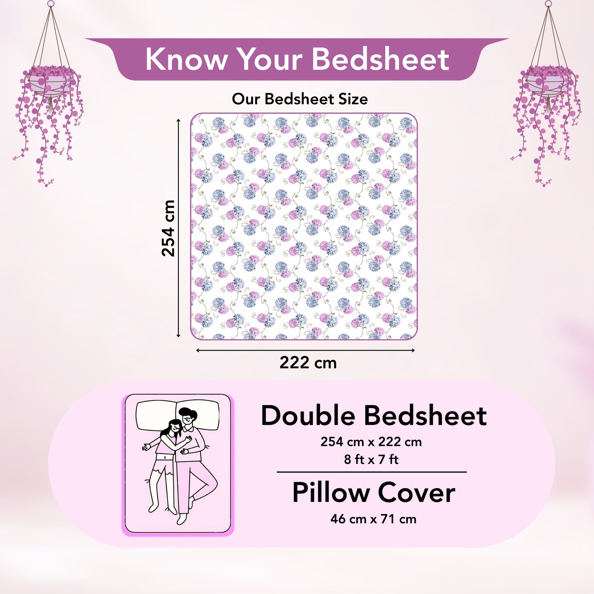 • Bed & Pillow Cover Size: 254 x 222 cm or 100 x 88 inches & 46 x 71 cm or 18 x 28 inches