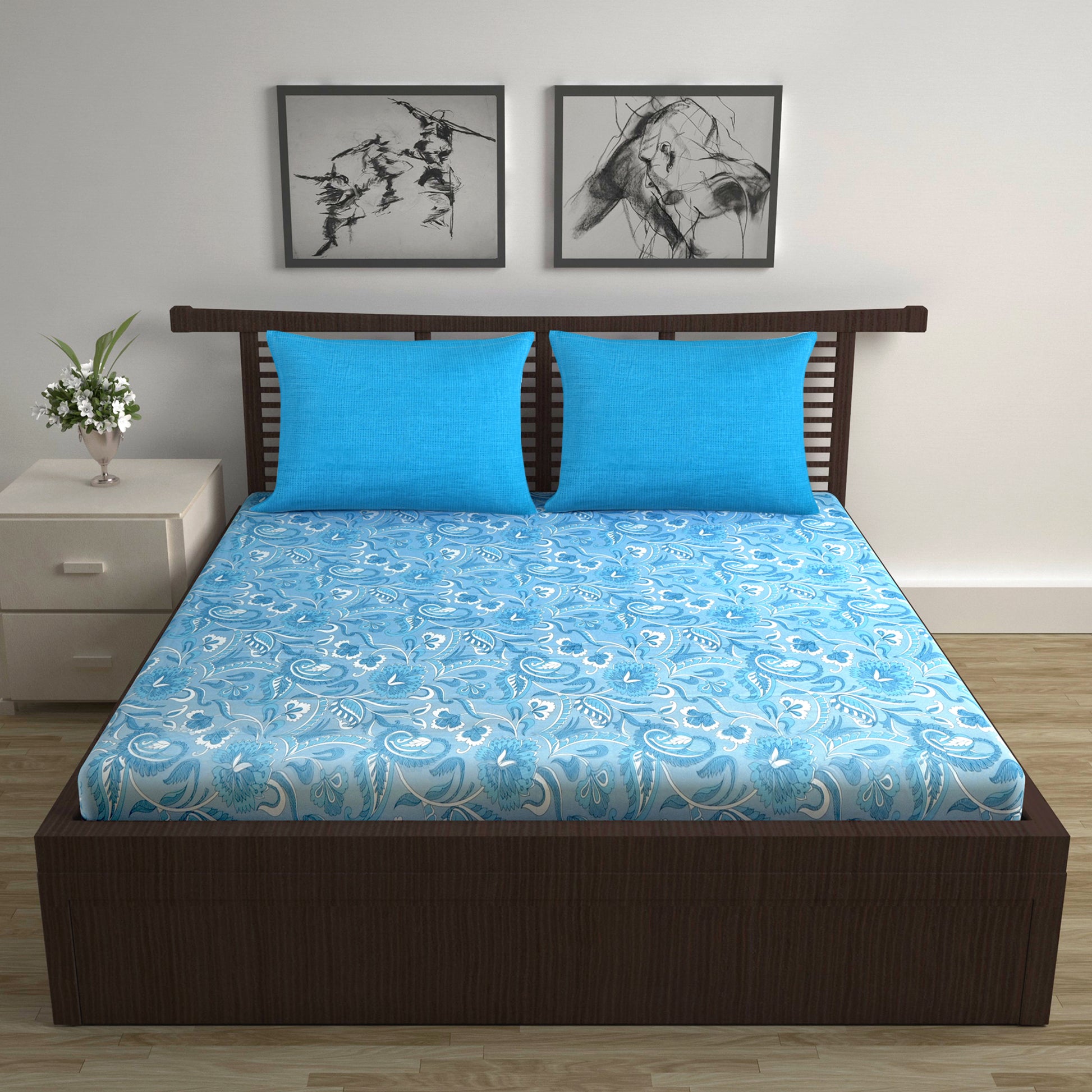 Blue Shades Regal Paisley 144 TC Cotton Double Bedsheet With 2 Pillowcovers