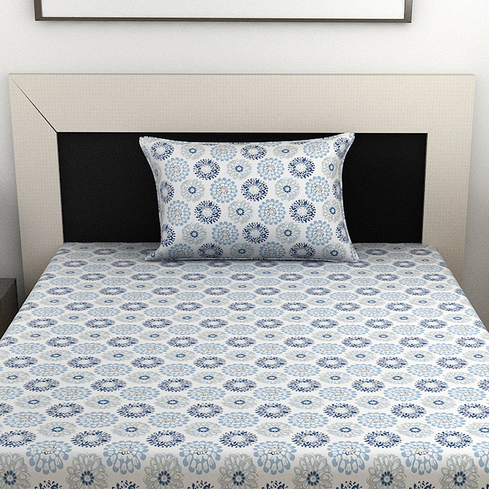 Summer Dahlia Floral Print Combo Bedsheet for Single Bed
