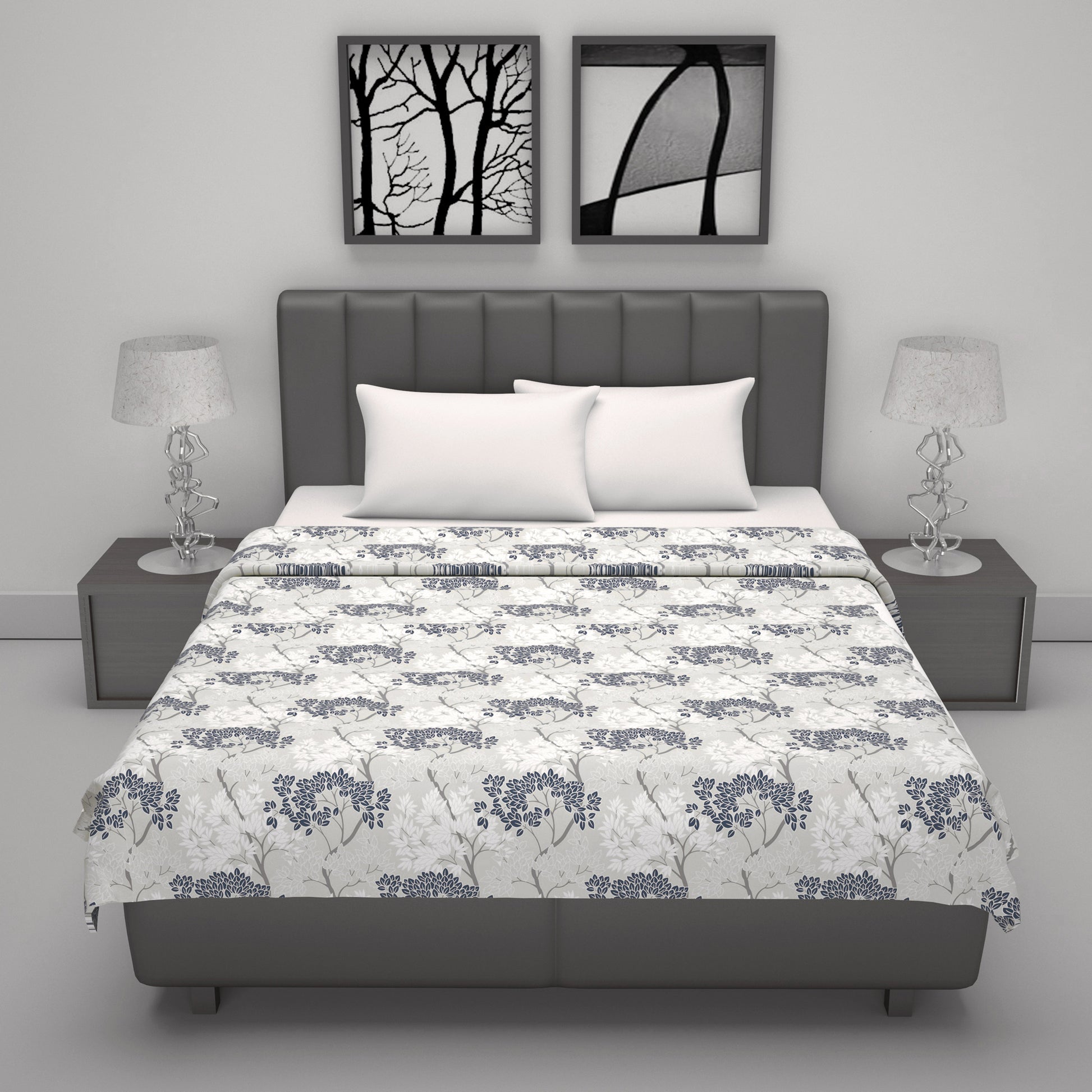 Grey and Green Floral Cotton Dohar Combo For Double Bed Set of 2