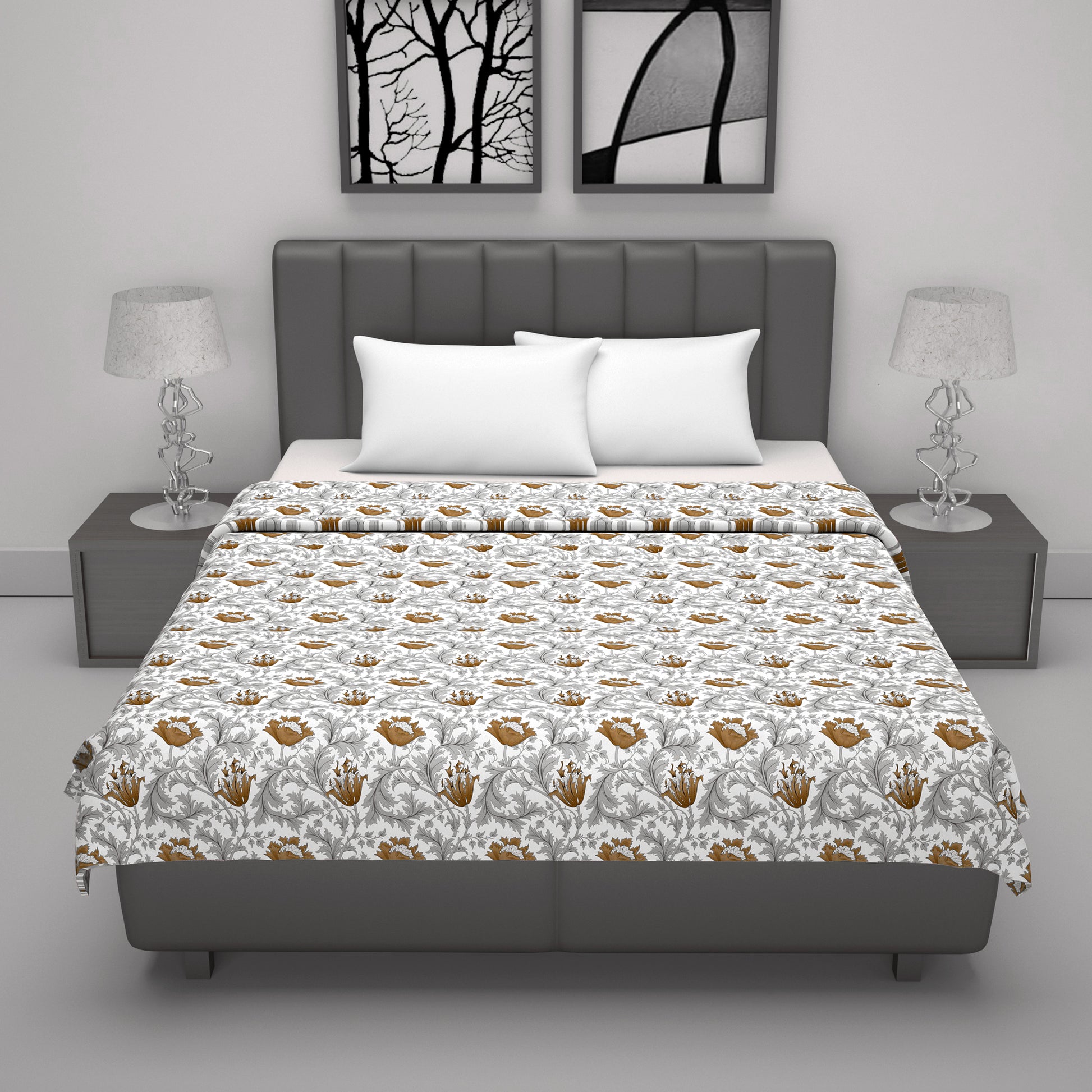 Tulip Floral Grey and Brown Silky Touch Dohar for Double Bed