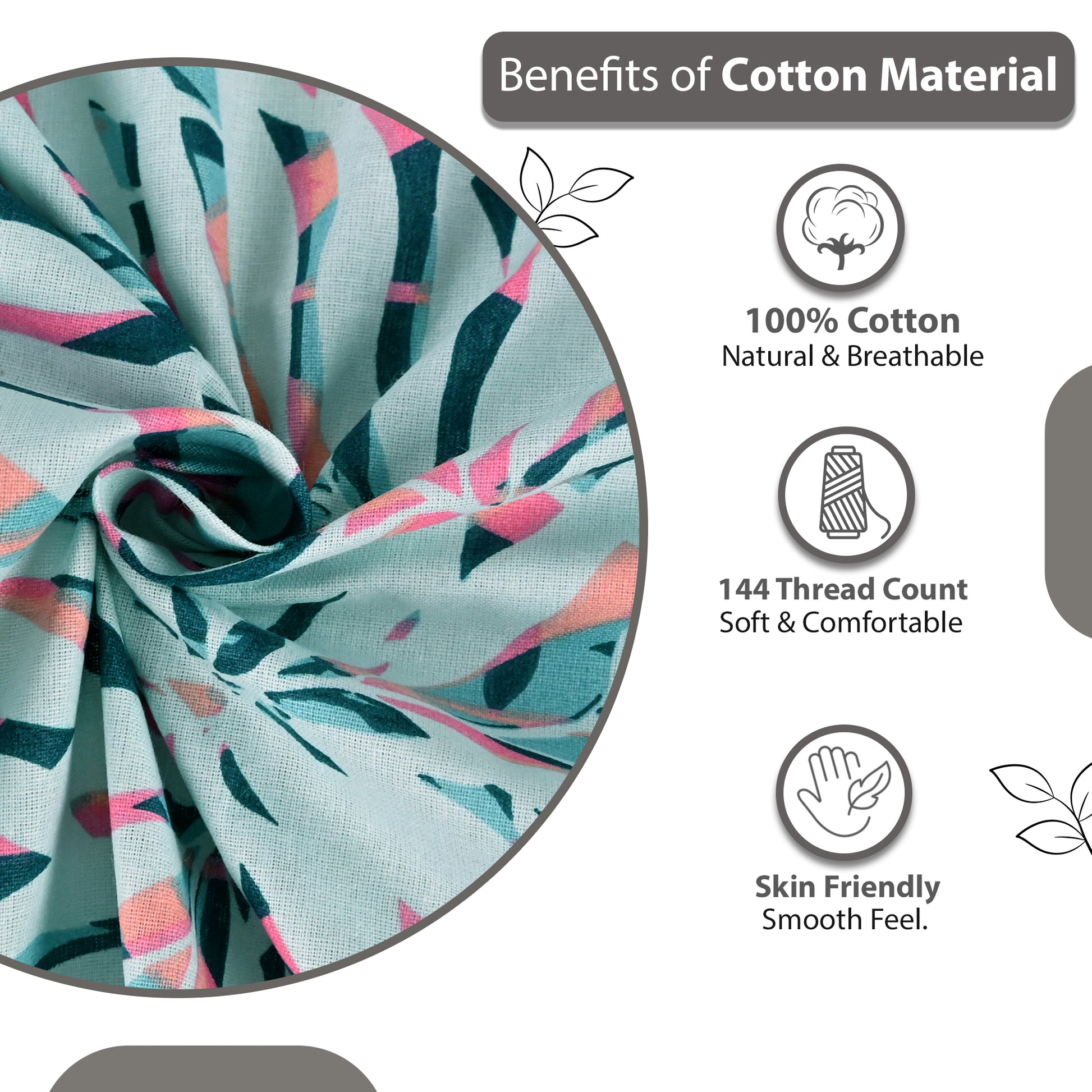 Light Blue Pink Tropical Leaf 144 TC Cotton Double Bedsheet With 2 Pillowcovers
