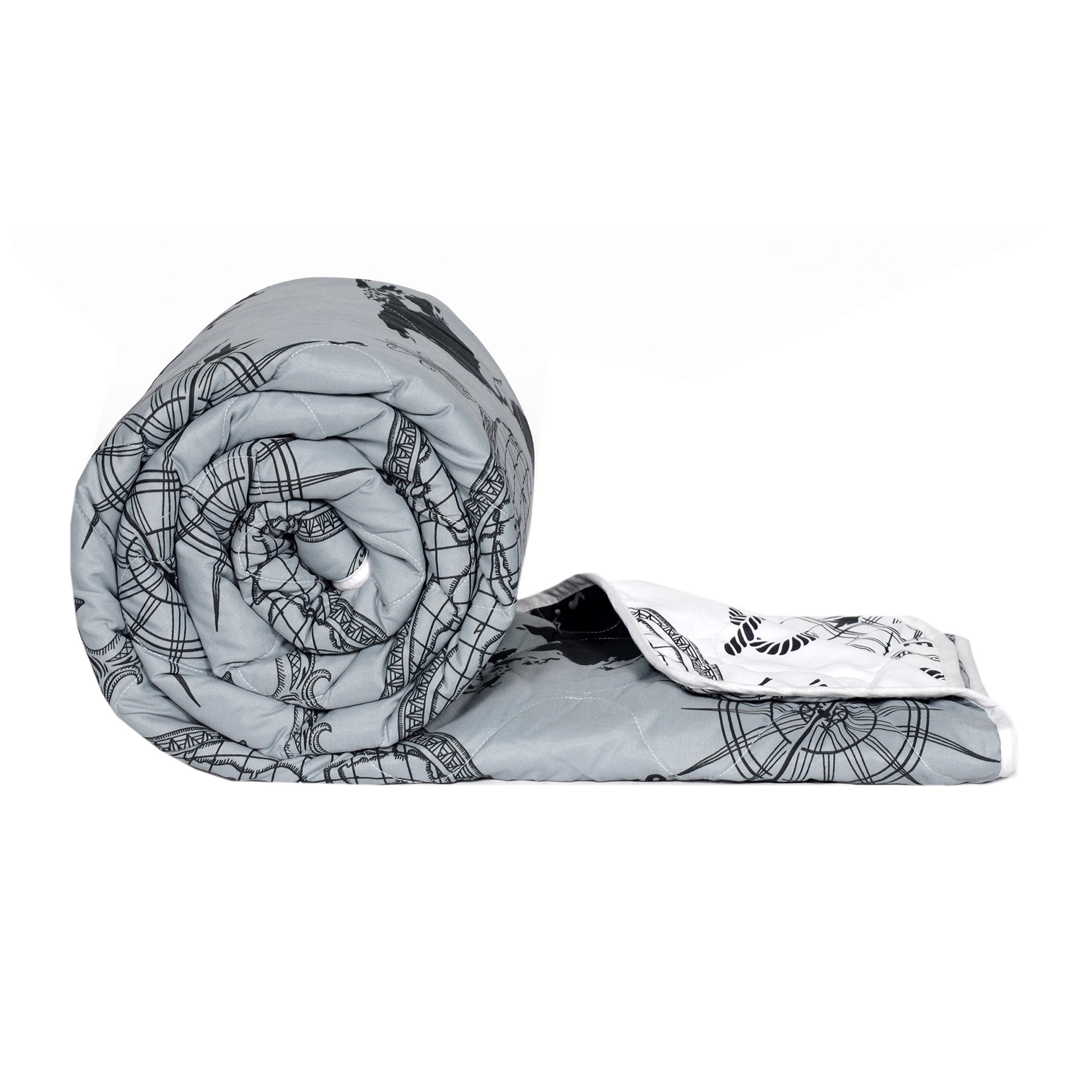 The design of this comforter is what caught my eye, and I’m happy I bought it! The geography pattern is creative, and the quilt is really comfortable for my double bed. Perfect for cool nights with the AC on.