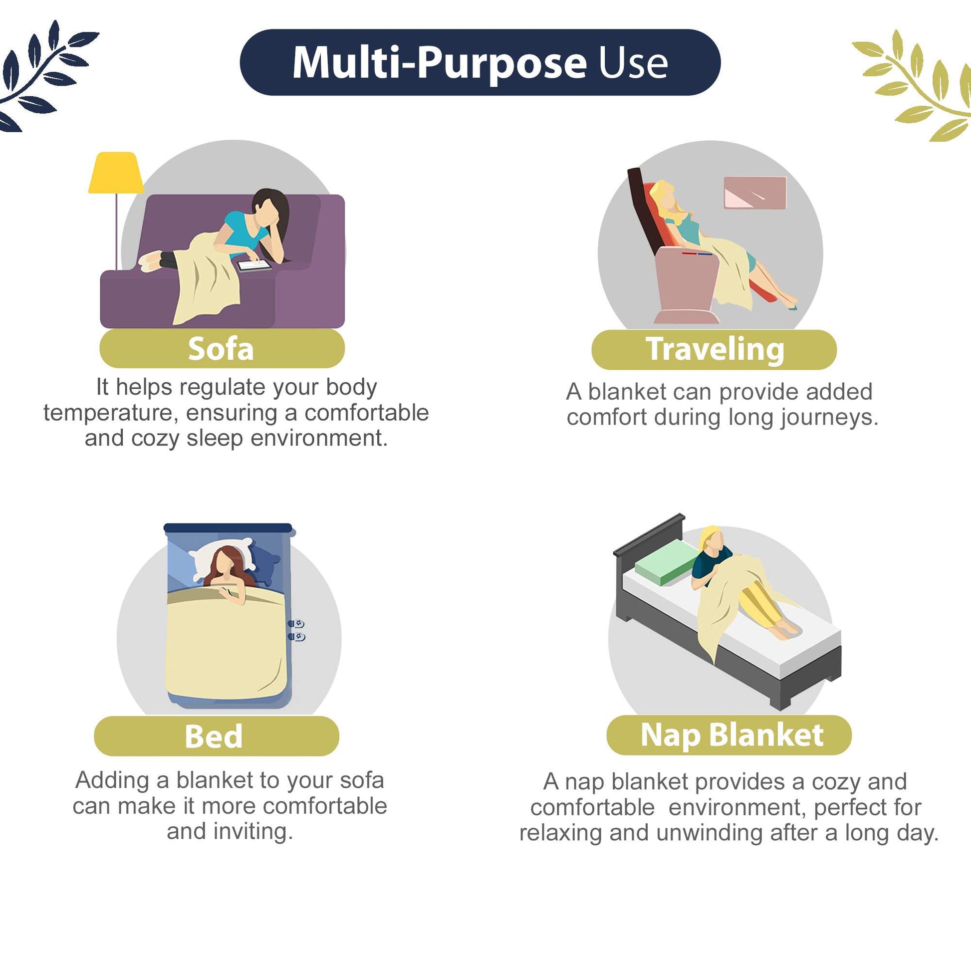 • Usage: Bedding Layer, Summer Blanket, Couch Throw, Travel Companion, Picnic Blanket, Nursing Cover, Baby Blanket, Home Décor, Gift Wrap, Beach Mat, Camping Companion, Yoga or Meditation Mat, Pet Bedding, Emergency Blanket