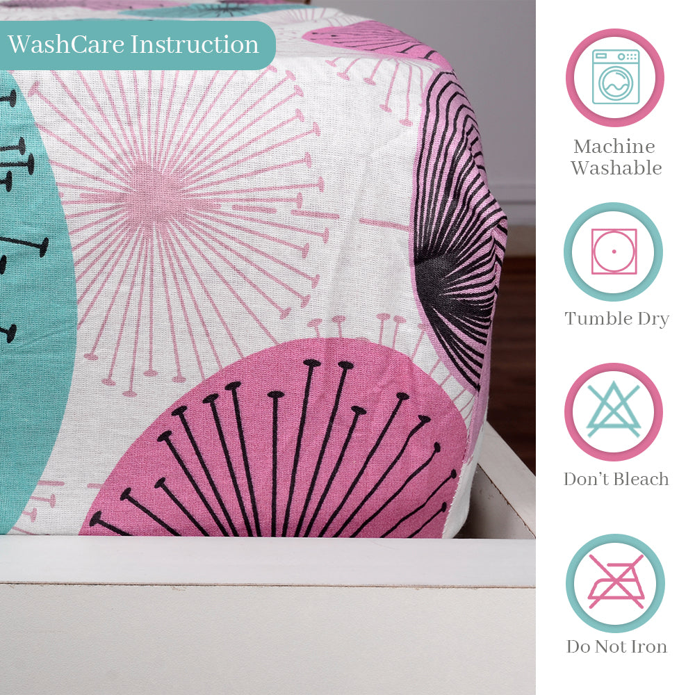 Rose Pink Floral Printed Elastic Fitted Double Bed Bedsheet