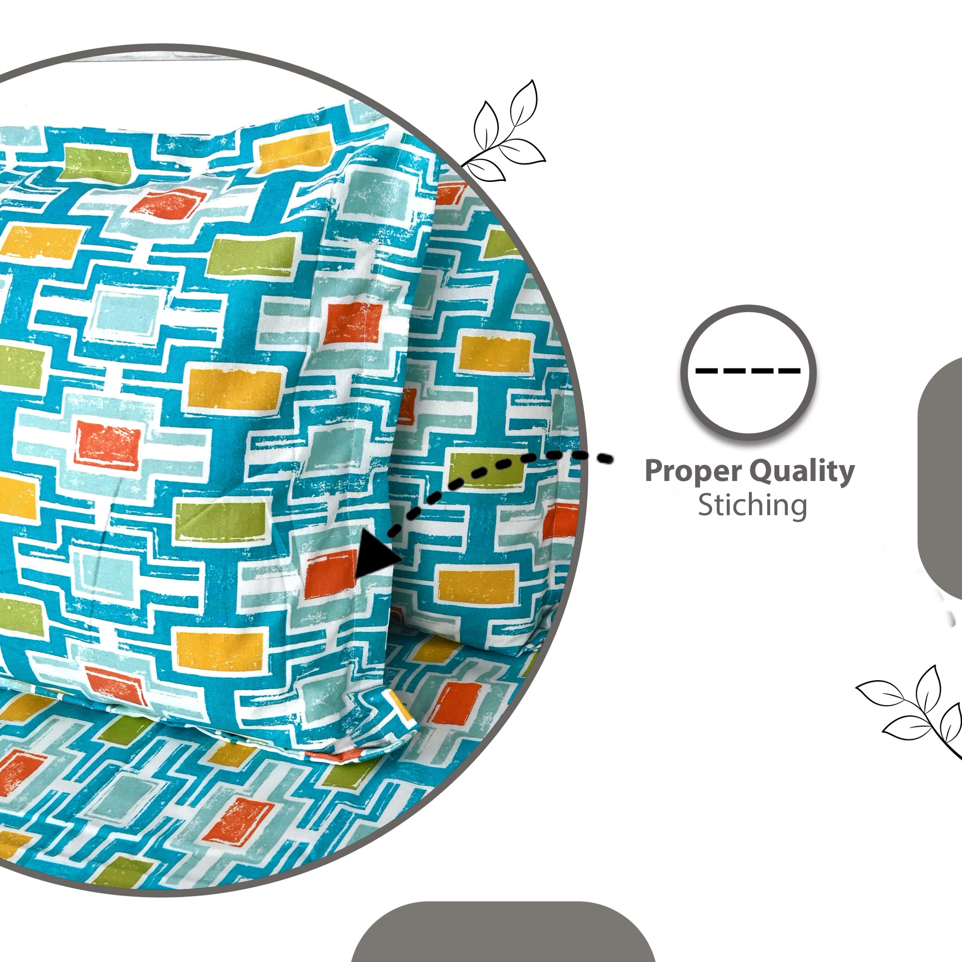 Oxford Blue Abstract 144 TC Polycotton Double Bedsheet With 2 Pillowcovers