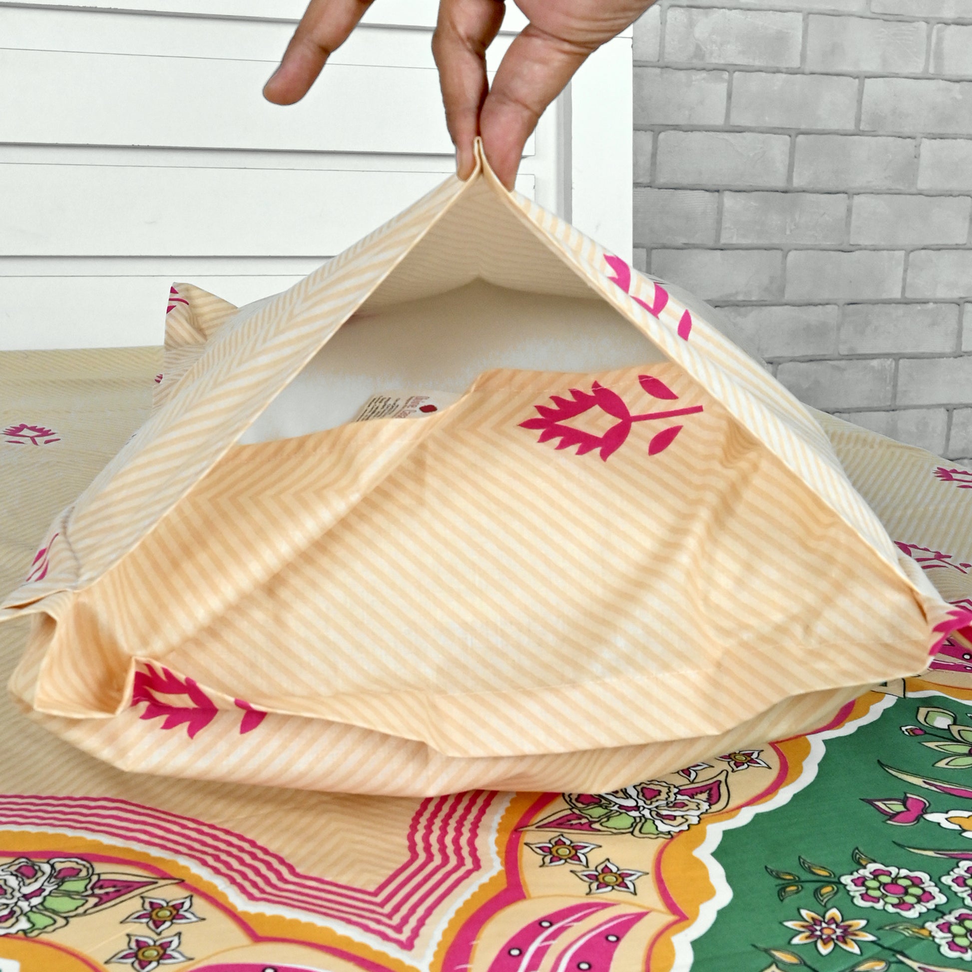 Bed & Pillow Cover Size: 254 x 222 cm or 100 x 88 inches & 46 x 71 cm or 18 x 28 inches
