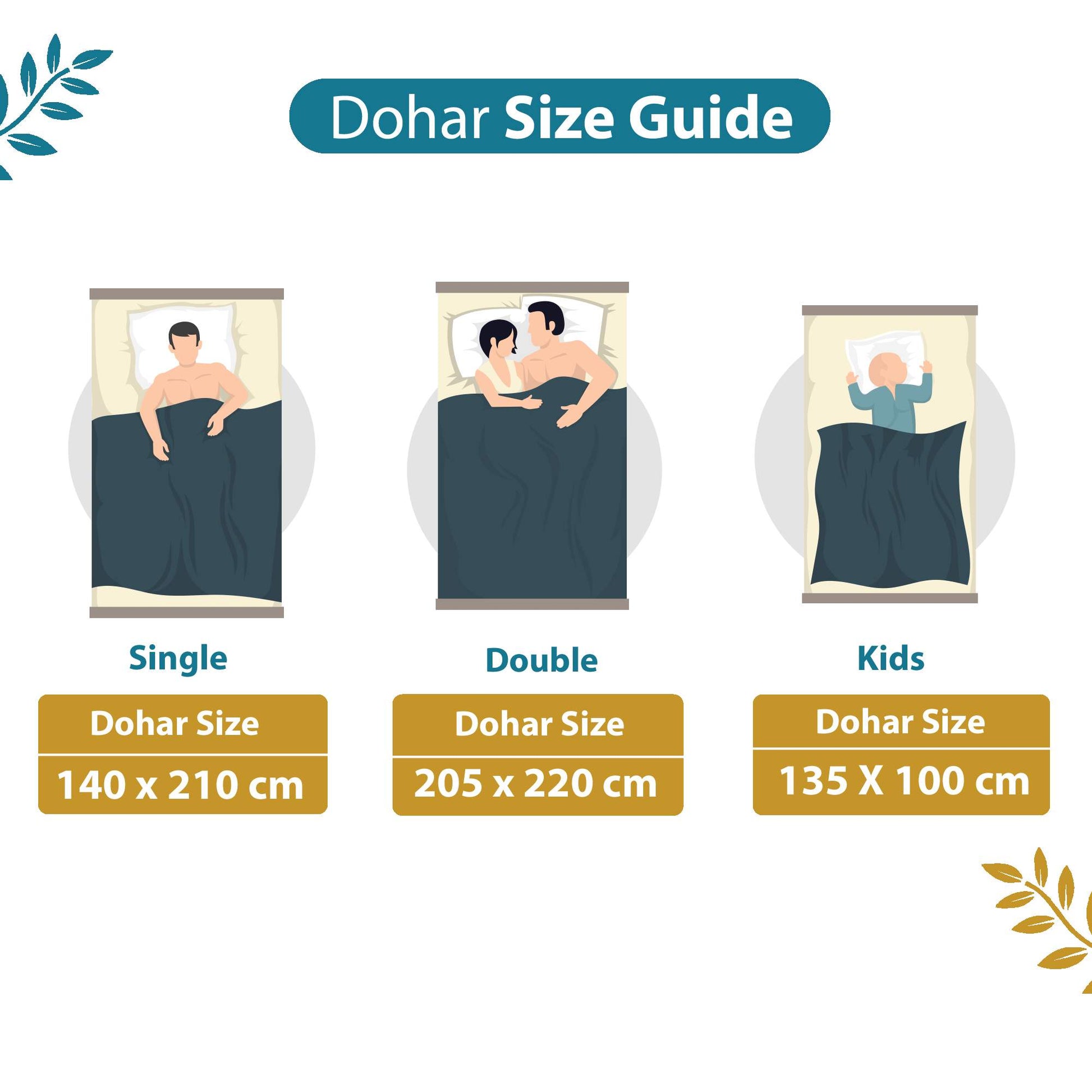 • Available in Various Sizes: Single bed dohar, double bed dohar, Baby / kids'dohar