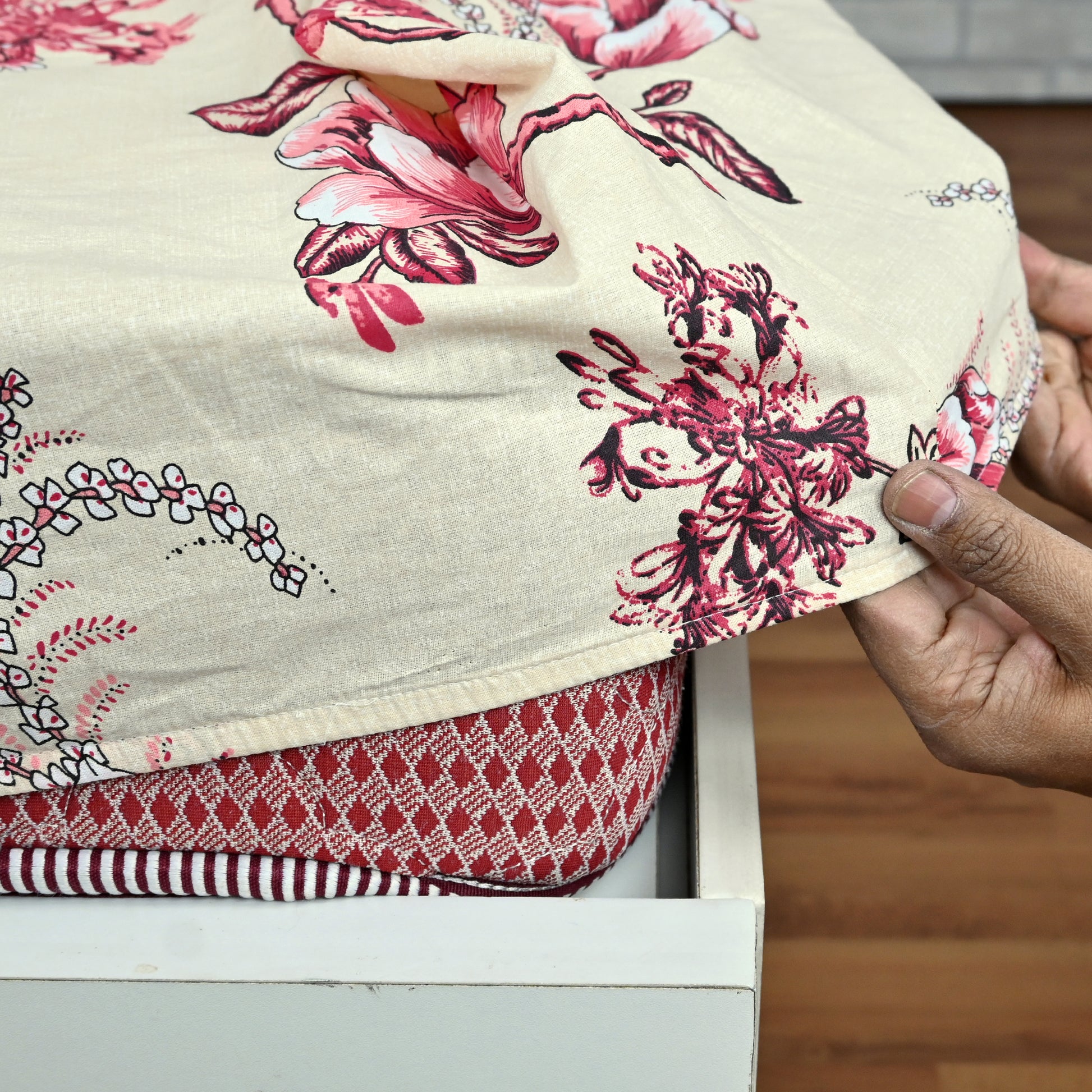 Discover the ultimate in comfort and convenience with our 100% Cotton 144 TC Elastic Fitted Bedsheet. Crafted with meticulous attention to detail, this bedsheet combines premium quality cotton with innovative design features to provide you with an unparalleled sleeping experience.