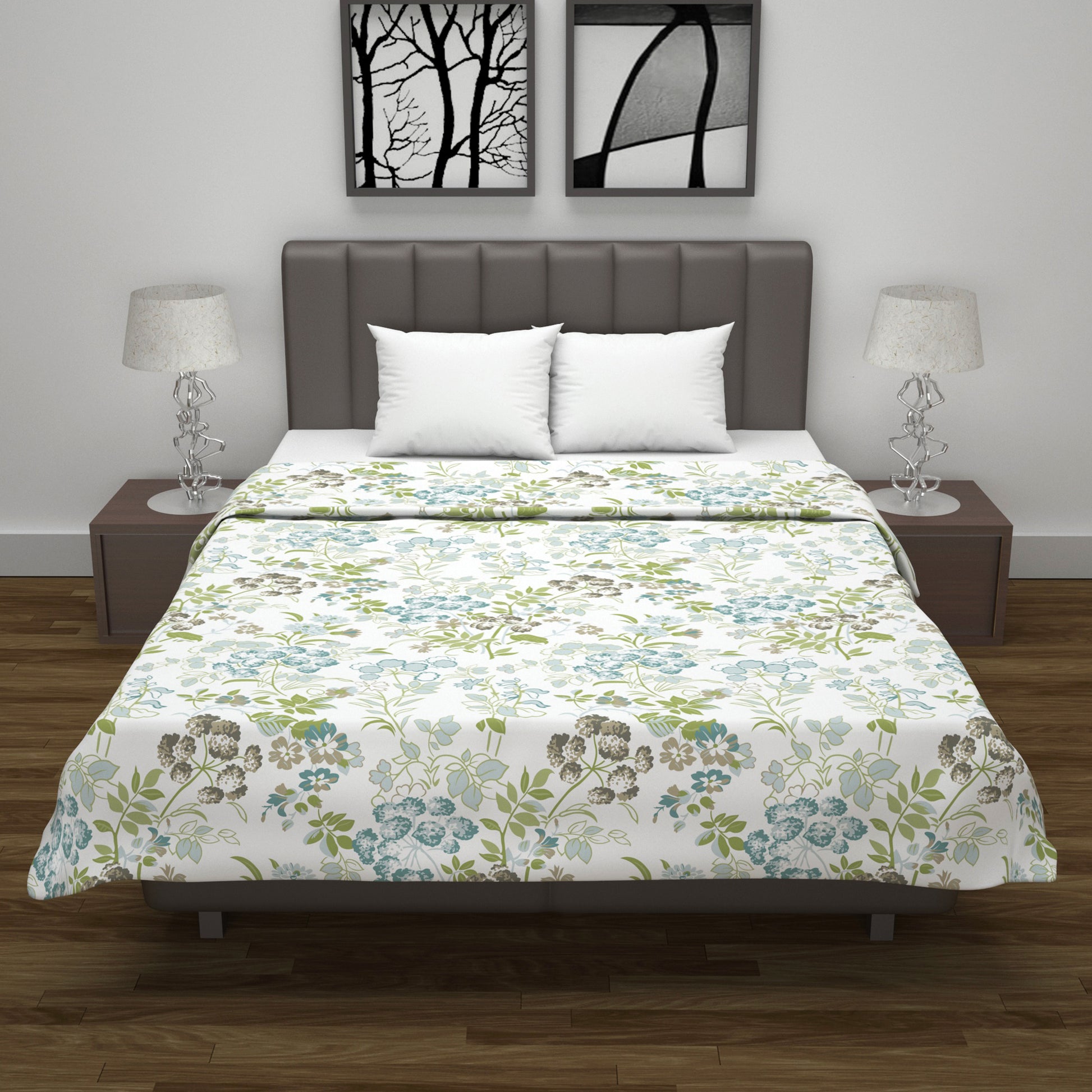 Vintage Floral Green and White 144 TC 100% Cotton All Season AC Dohar for Double Bed