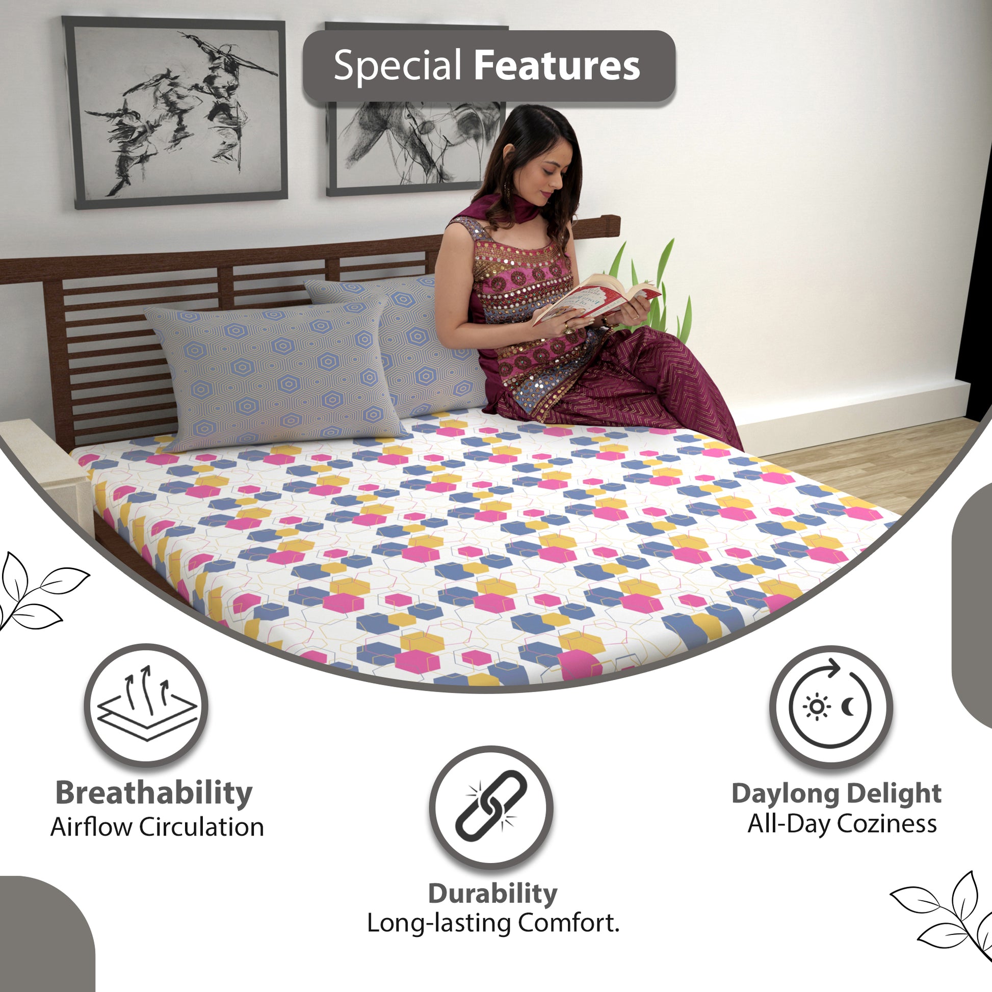• Special features: Premium Fabric, Vibrant Designs, Perfect Fit, Easy Care, Durable Build, Breathable, Fade-Resistant, Versatile Style, Affordable Luxury, Quick Bedroom Makeover